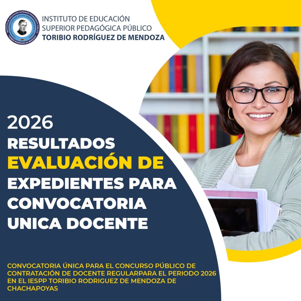 El Instituto Superior Pedagógico Público Toribio Rodríguez de Mendoza, informa a la comunidad sobre los resutlados de la evaluación de expedientes de la Convocatoria al concurso público de contratación de docente regular en una plaza vacante presupuestada 2026 en el IESPP Toribio Rodriguez de Mendoza de Chachapoyas.